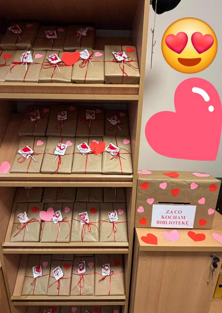 Zapraszamy wszystkich uczniów oraz pracowników szkoły do wspólnej zabawy. Wystarczy przyjść do biblioteki, wypisać na serduszku, za co kochacie bibliotekę, a następnie wybrać z półki książkę-niespodziankę z małym upominkiem.